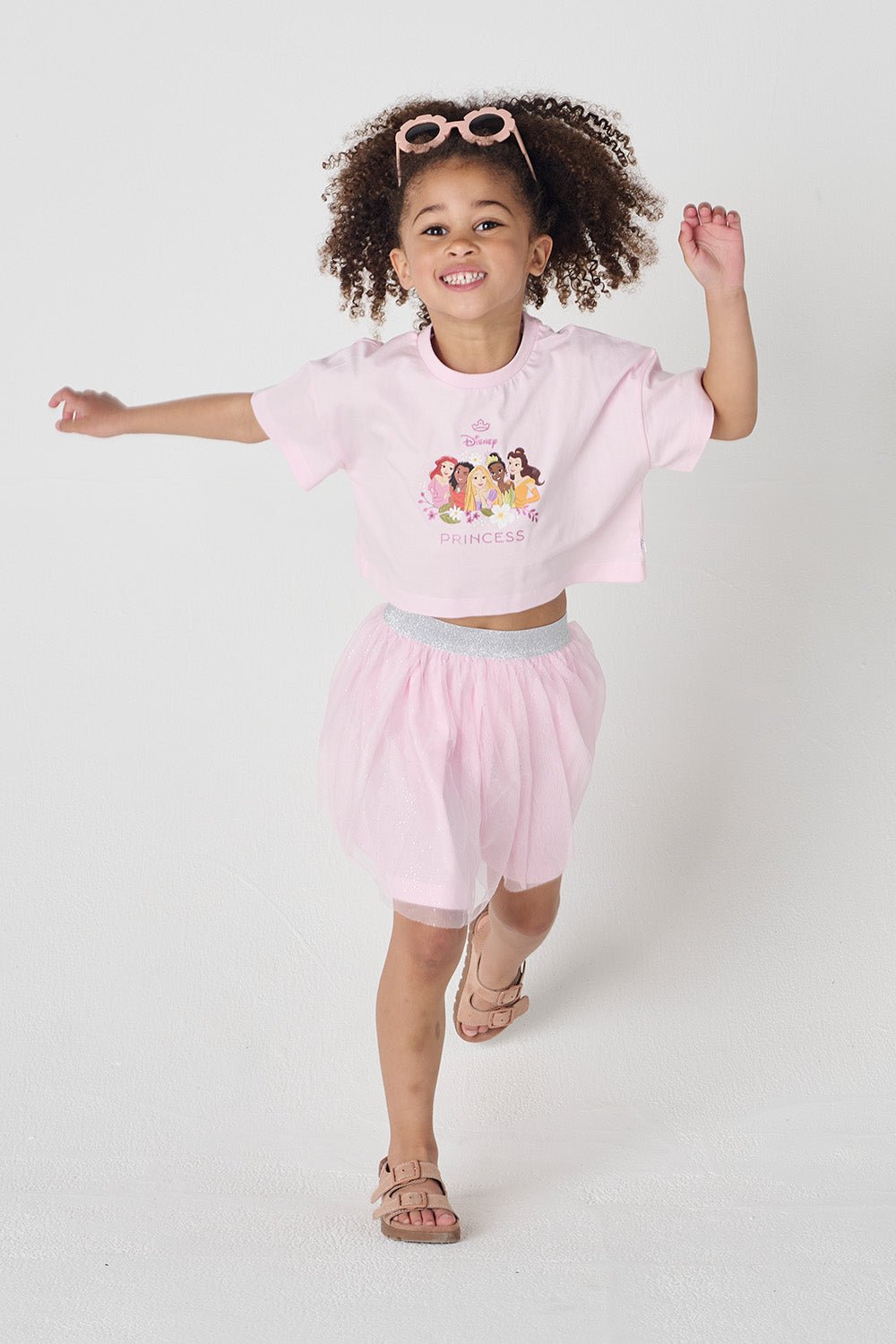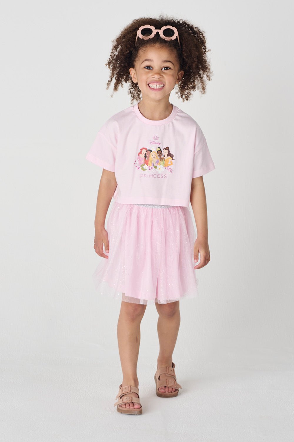 Let your little one shine like royalty with the Disney Princess Girls Daywear Top and Tutu Set, designed for toddlers and young girls aged 1-5. The set features a Pink top made from 100% BCI Cotton with a magical Disney Princess print, including beloved characters like Belle, Ariel, and Jasmine. The outfit is completed with a sparkling 100% polyester tutu skirt, perfect for twirling and making magical memories.