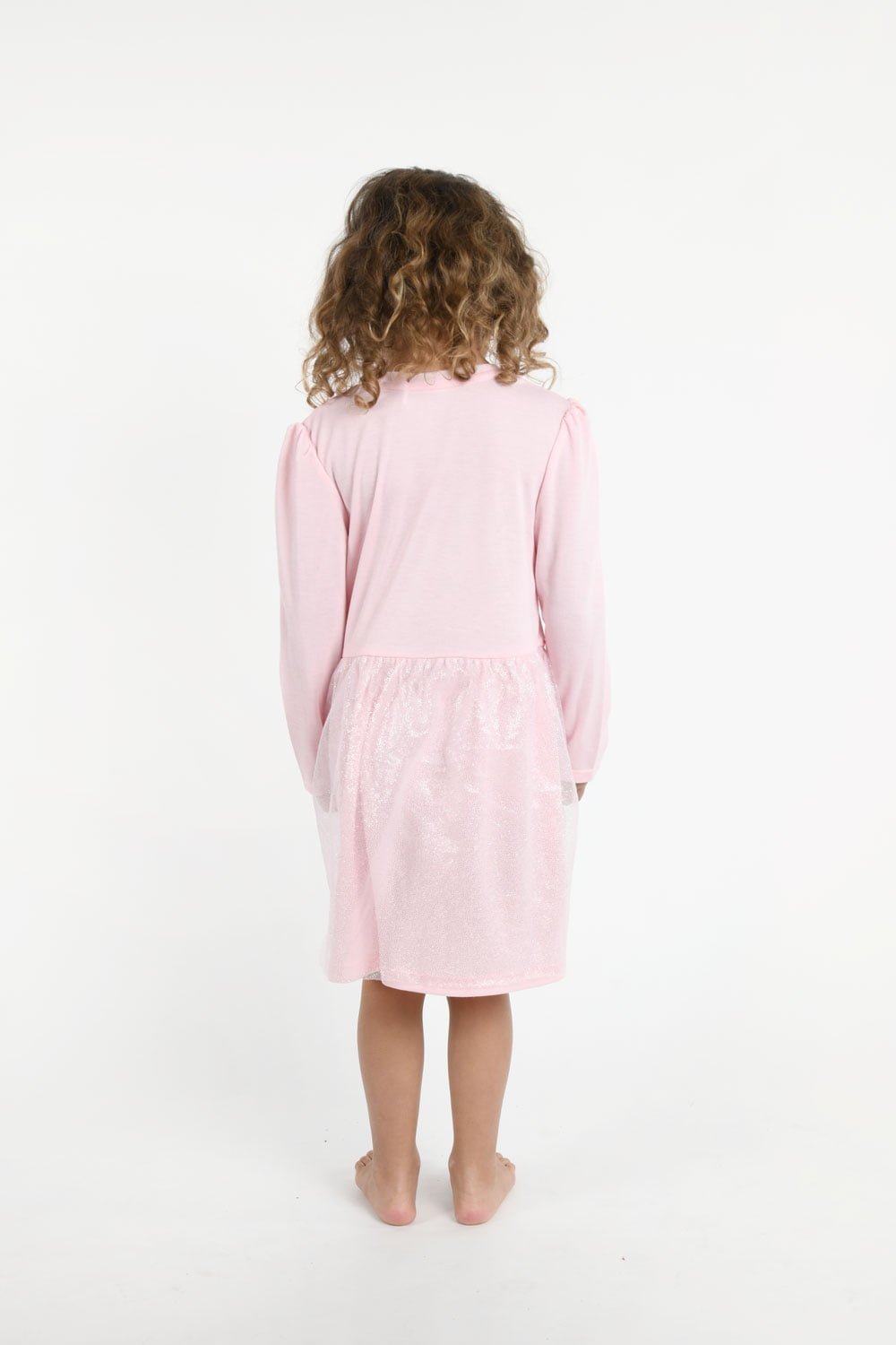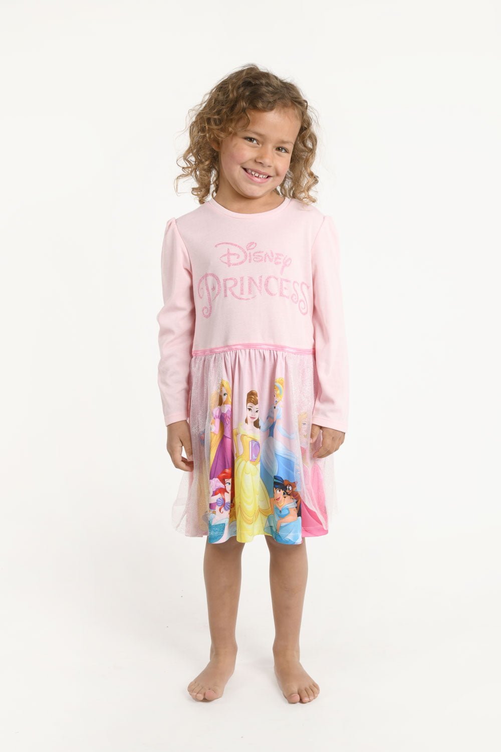 The most gorgeous nightie to ensure a magical night's sleep for little Princesses everywhere! Features a sublimation printed skirt panel which features all your little ones' favourite princesses, pink glitter fit for royalty and silver foil net mesh skirt - perfect for twirling the night away!