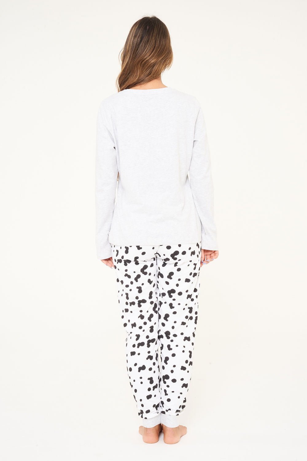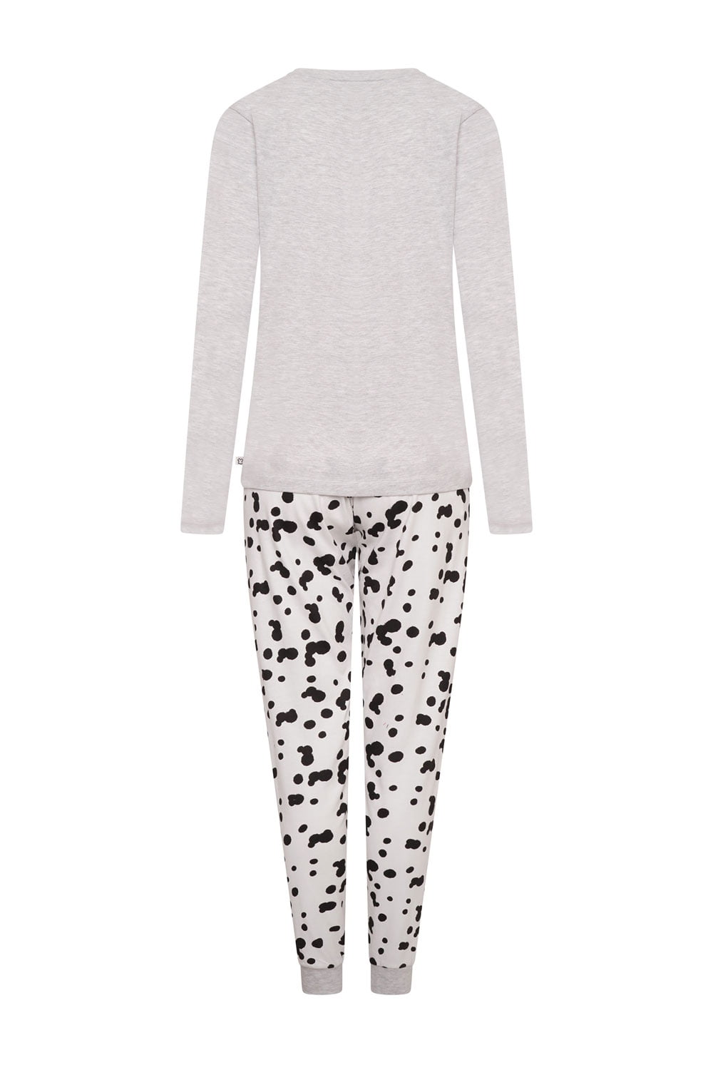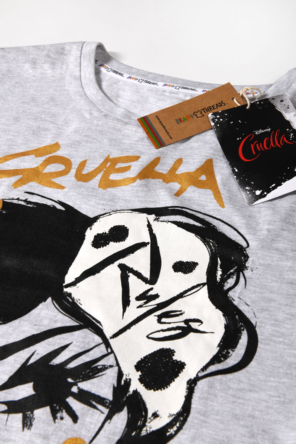 This gorgeous pyjama will enable you to sleep or lounge around in style! Lovingly and sustainably made, the latest addition to our collection offers a fashionable light, super-soft grey marl in BCI cotton. Includes detailed print of the wickedly evil Cruella Deville, with matching long length bottoms incorporating the super cute and iconic Dalmatian spots. A must for lounging at home and for a comfortable nights' sleep - a perfect Disney gift for birthdays and special occasions! Sizes XS-XL available, check size charts for best possible fit.