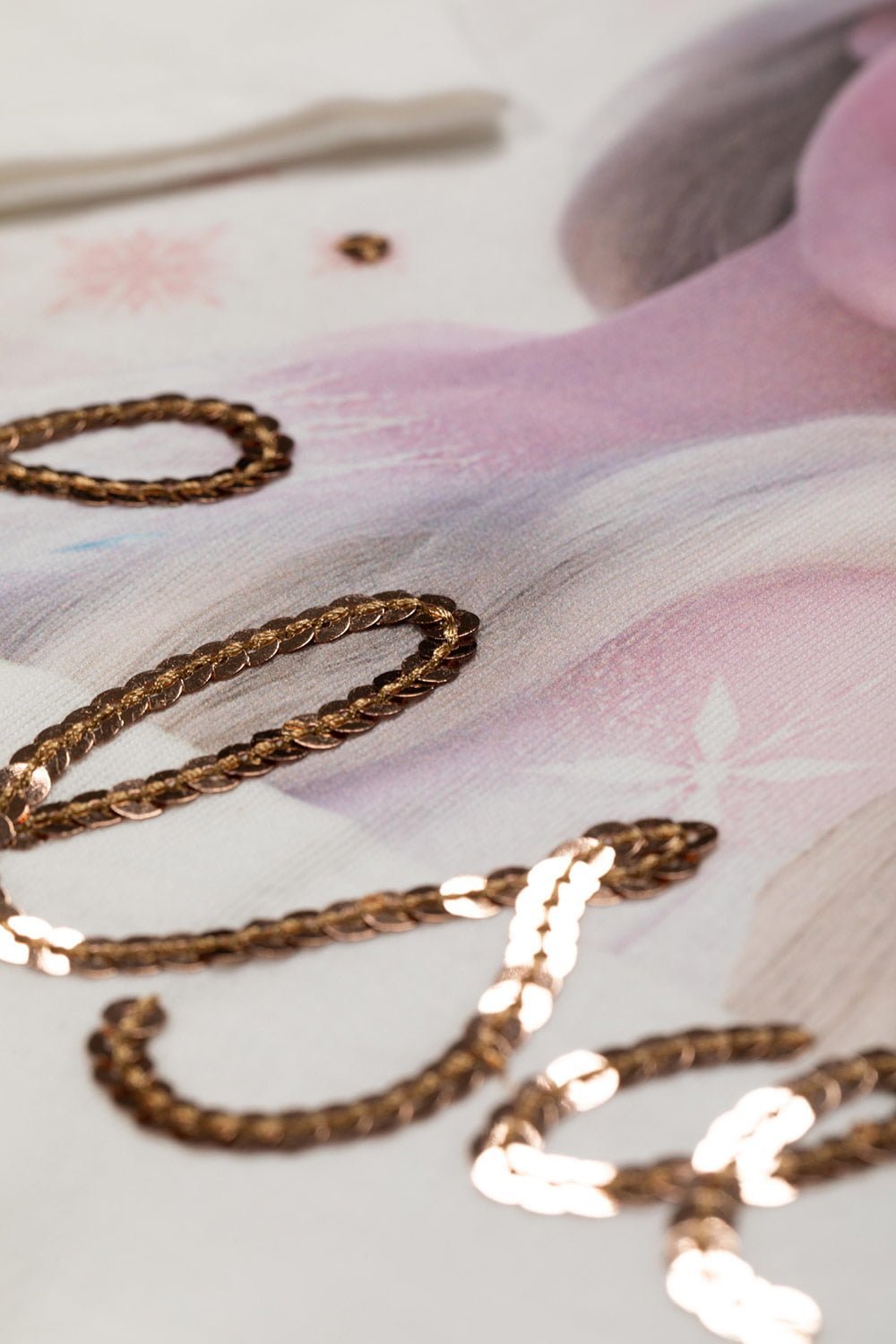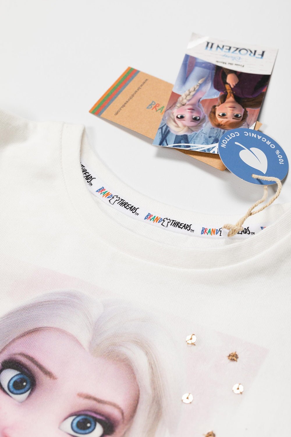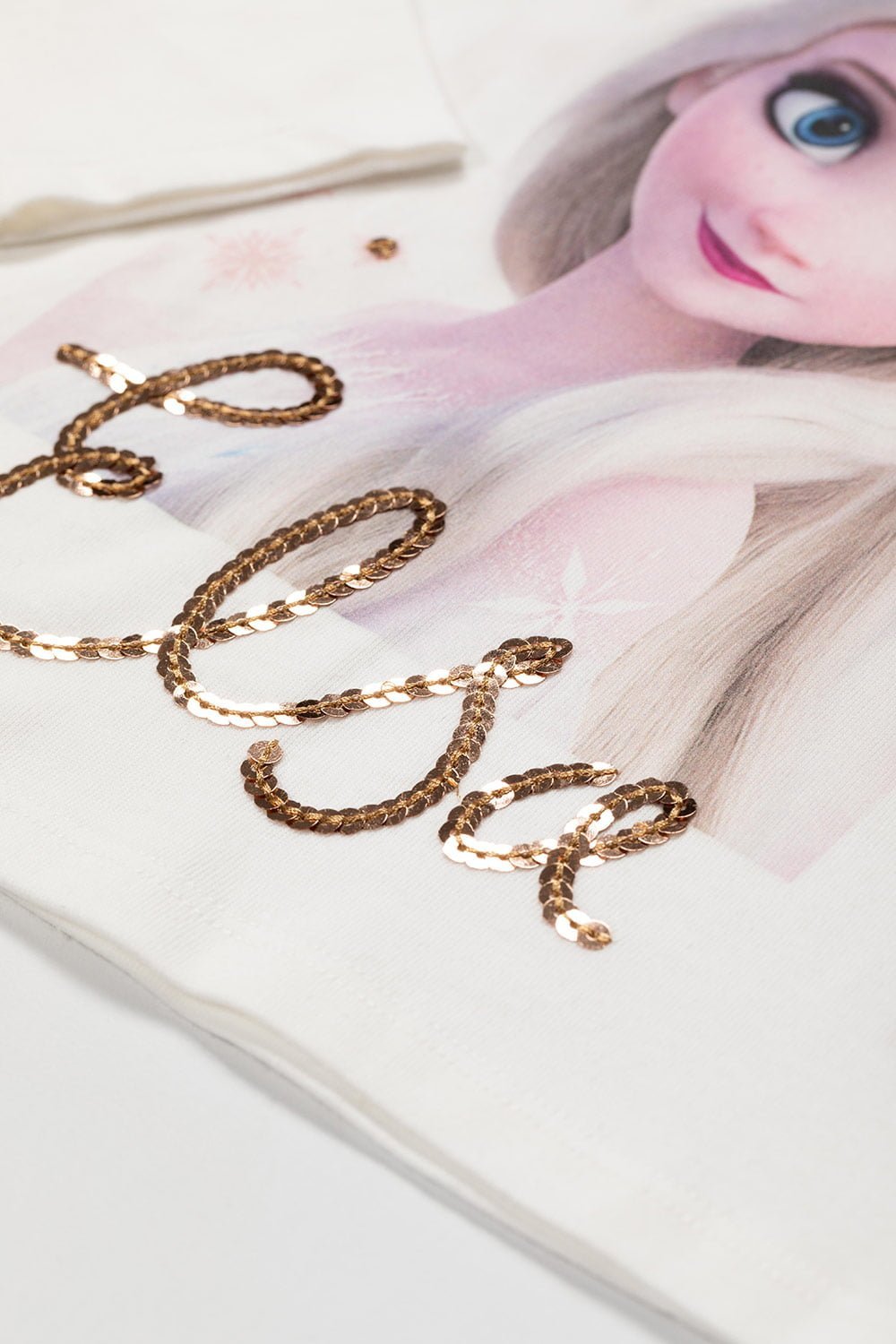 Fans of Disney's Frozen will be sure to love this beautiful long sleeve top. The tee features Elsa in a gorgeous digital waterbased print, rose gold embroidery, sequins, snowflakes and a super-girly frill detail to the sleeves. Only the best, fit for a princess!