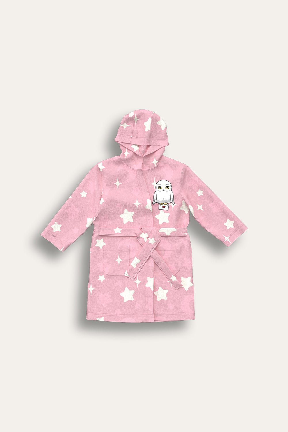 Wrap your little witch in magical comfort with this Harry Potter Girls Hedwig Fleece Robe, a cosy dressing gown inspired by the wizarding world. Designed in a soft pink fleece with white star print, this robe features a detailed appliqué of Hedwig the owl on the chest and a lined two-piece hood to keep her warm from head to toe.