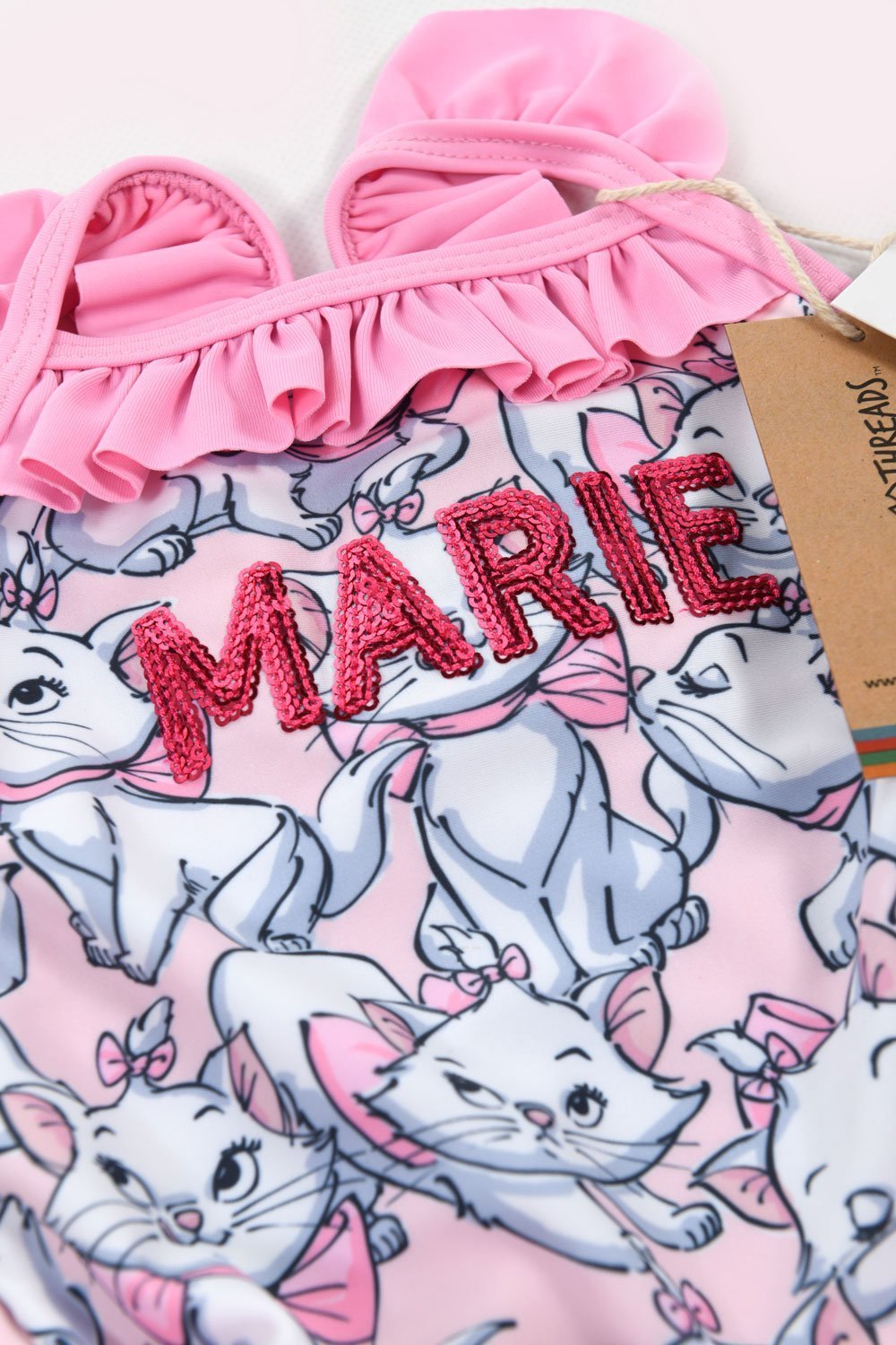 The most puurfect swimming costume fit for the most lady-like of cats! This Aristocats bather comes with a sweet all over print featuring the very classie Marie and beautiful frills on the shoulder and front neck line.