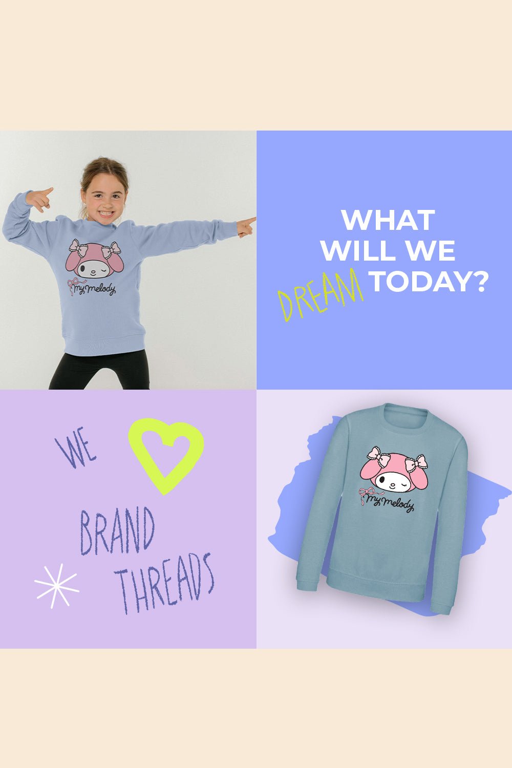 Bring a smile to your child’s wardrobe with this charming My Melody sweatshirt – combining fun style, comfort, and quality.