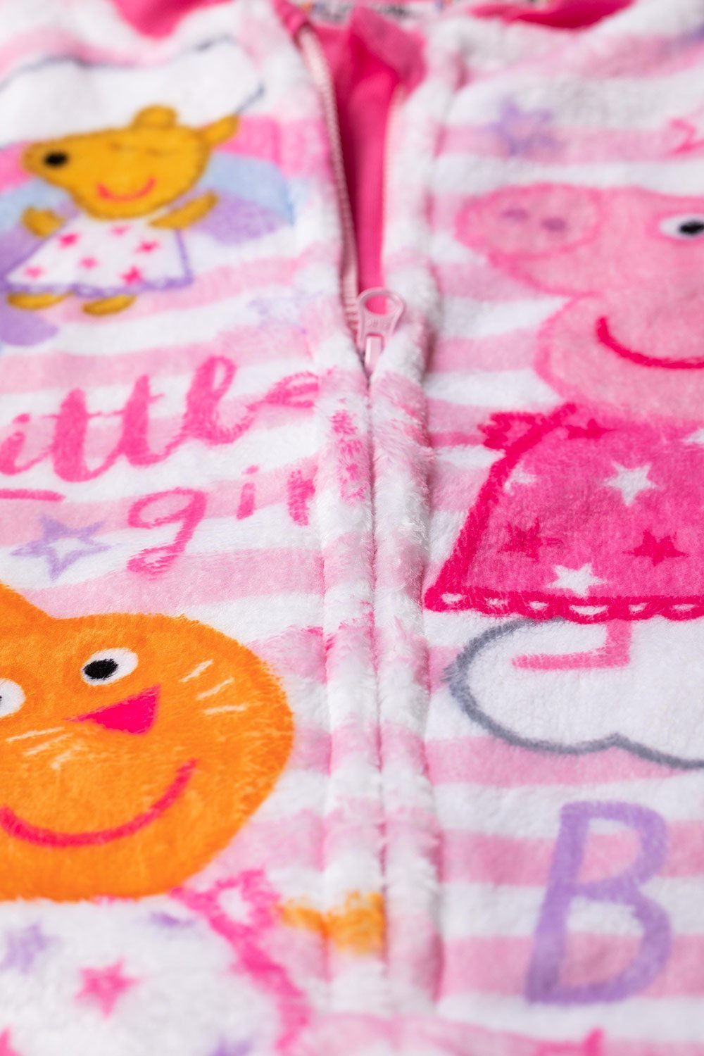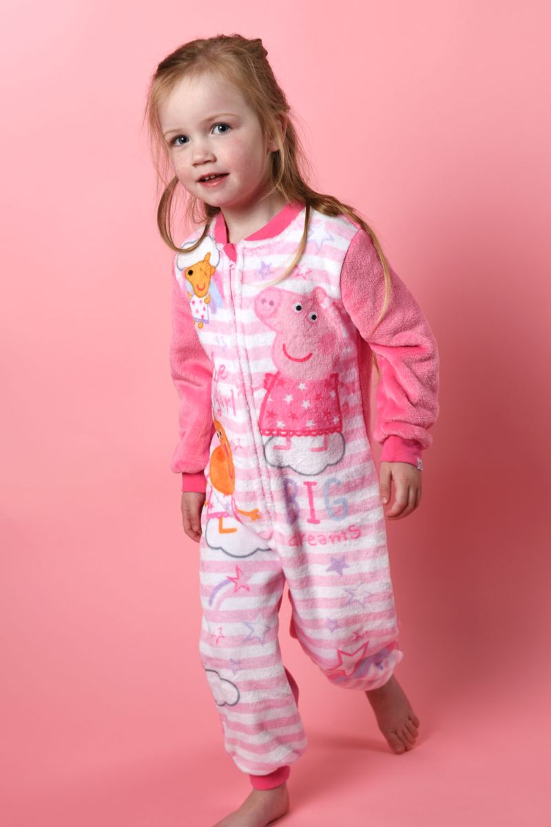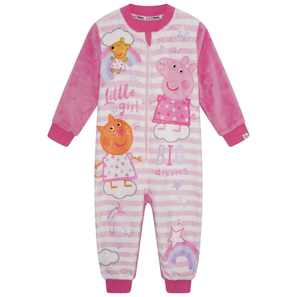The cutest onesie for the littlest of dreamers! Your little Peppa Pig fans will love this onesie as it features our favourite little piggy, Peppa, Candy Cat and Teddy. Made of the comfiest soft fleece, the onesie also features cuffed sleeves and legs for the ultimate snugly fit. Get your little ones ready for bedtime with the adorable and comfortable Peppa Pig Girls Fleece Onesie. Featuring our beloved Peppa, Candy Cat, and Teddy, this dreamy onesie is made with the softest fleece material and cuffed sleeves and legs for a snug fit. Perfect for keeping your little dreamers cosy all night long.