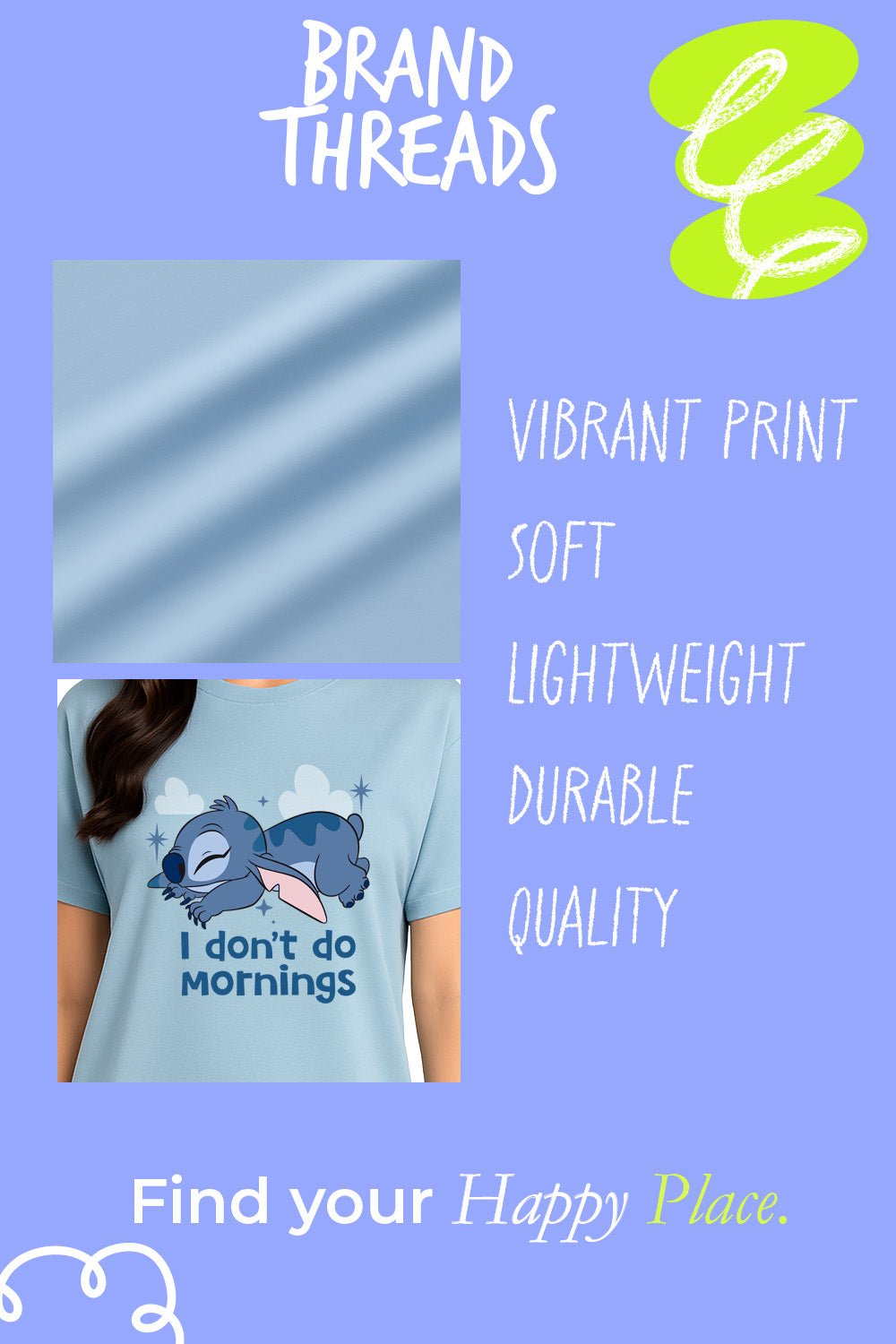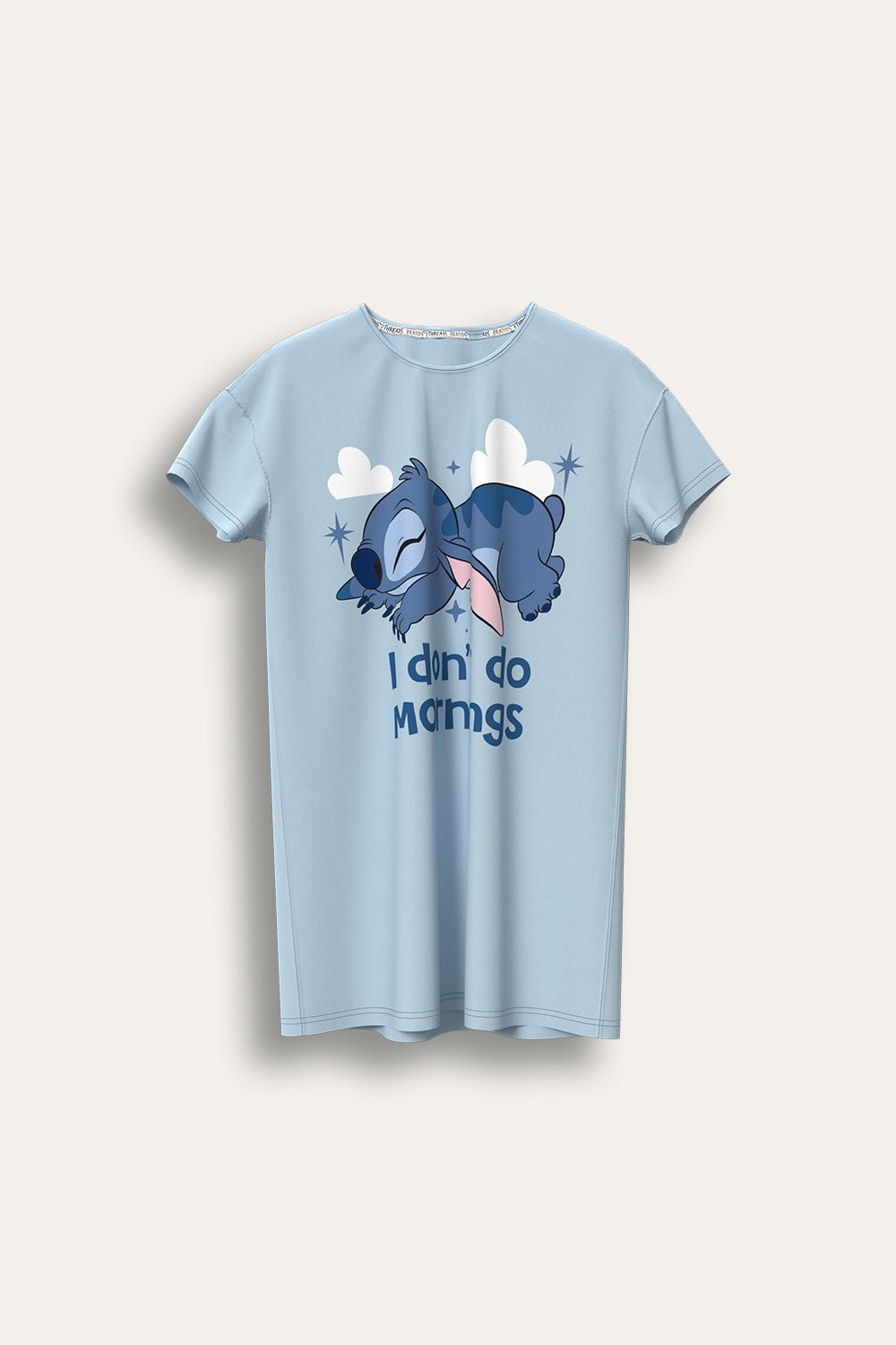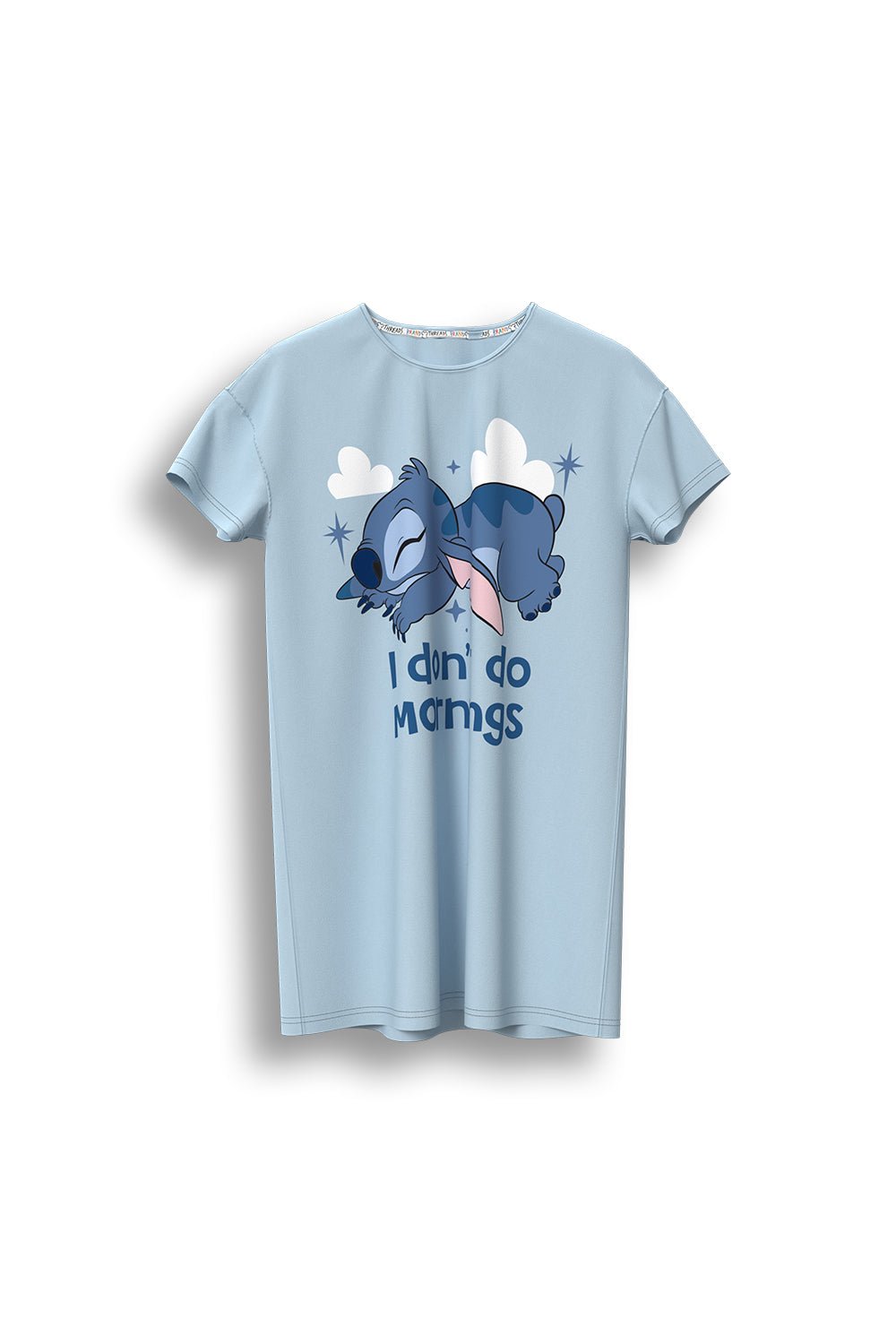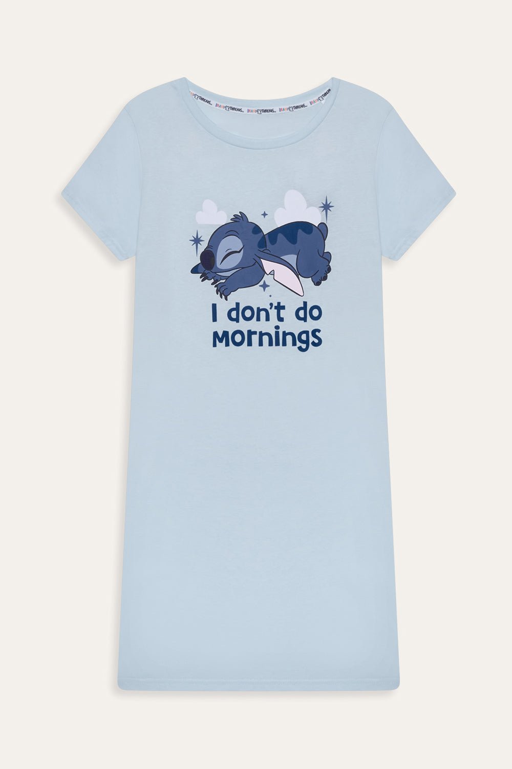 Drift off in comfort with this Stitch women’s nightdress – a soft and breathable nightie designed for easy lounging and restful sleep. Made from 100% cotton, this nightdress features a relaxed fit with short sleeves, ideal for year-round comfort. The playful front design shows Stitch napping peacefully with the slogan “I don’t do mornings” – a fun nod to those lazy starts and chilled nights.