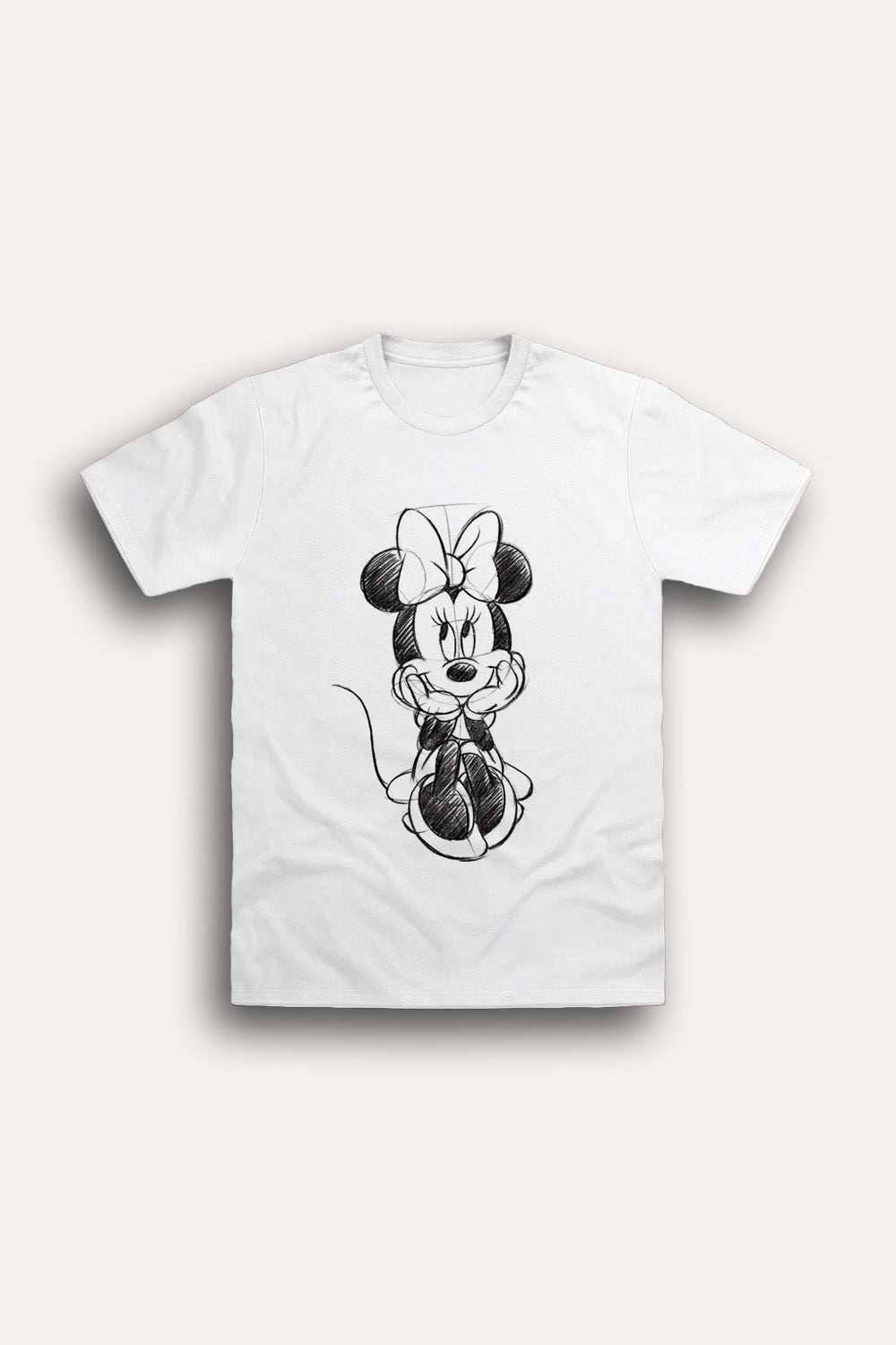 Add timeless charm to your outfit with the Disney Minnie Mouse Ladies White T-Shirt. This stylish tee showcases a classic sketch design of Minnie Mouse, making it a perfect choice for Disney fans of all ages.