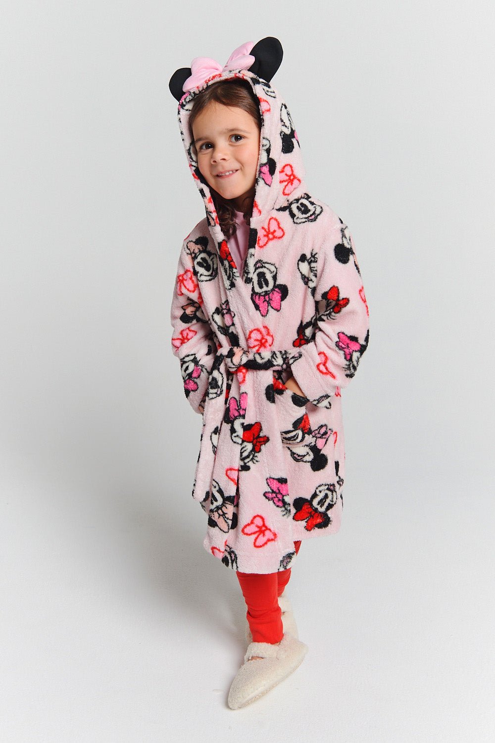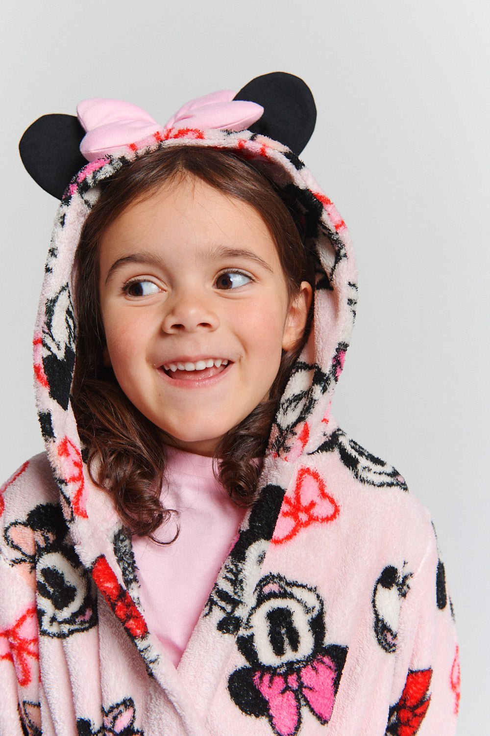 Add a touch of Disney magic to your child’s bedtime routine with this officially licensed Minnie Mouse girls dressing gown. Bursting with charm and comfort, this long sleeve robe features a vibrant all-over Minnie print on a sweet pink base, complete with iconic bows in red, pink and coral hues. The playful hood is topped with 3D Minnie ears and a soft fabric bow – a fun and practical detail kids adore.