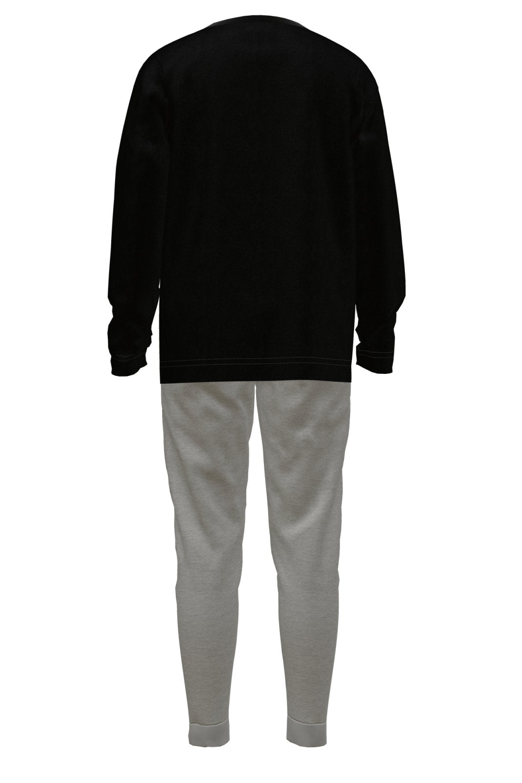 Join the heroic half-shell team for dreamland adventures with our Teenage Mutant Ninja Turtles Boys' Pyjama Set. The set includes a long sleeve black top featuring vibrant, square portraits of Leo, Mikey, Donnie, and Raph, ready for action. The grey trousers complement the top with a striking TMNT print down one leg, embodying the spirit of the beloved series. Crafted for comfort and designed to inspire, these PJs are perfect for fans aged 3 to 8.
