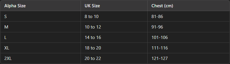 | Size | Bust (cm) | Chest (cm) | Waist (cm) | Sleeve Length (cm) | Hips (cm) | Inside Leg (cm) |
