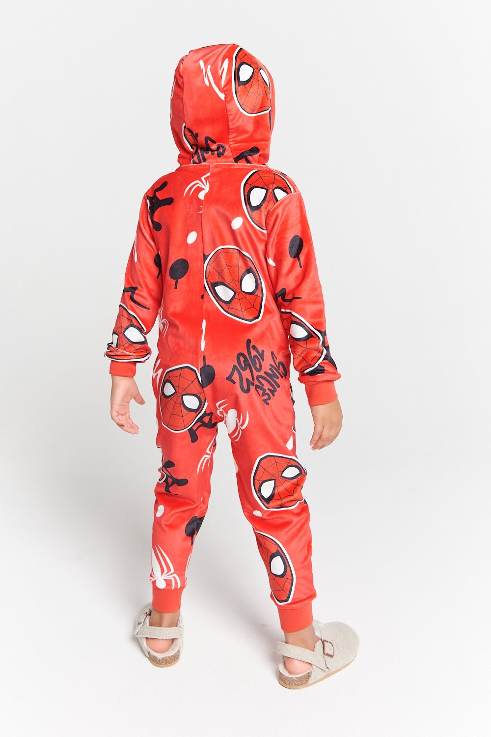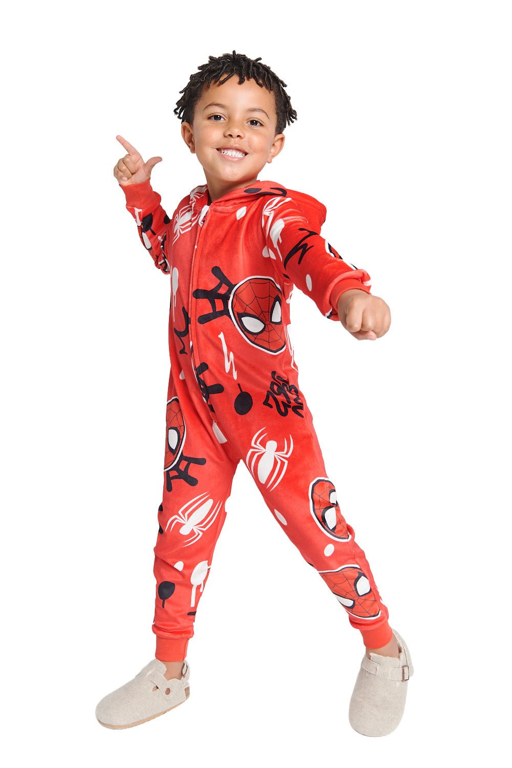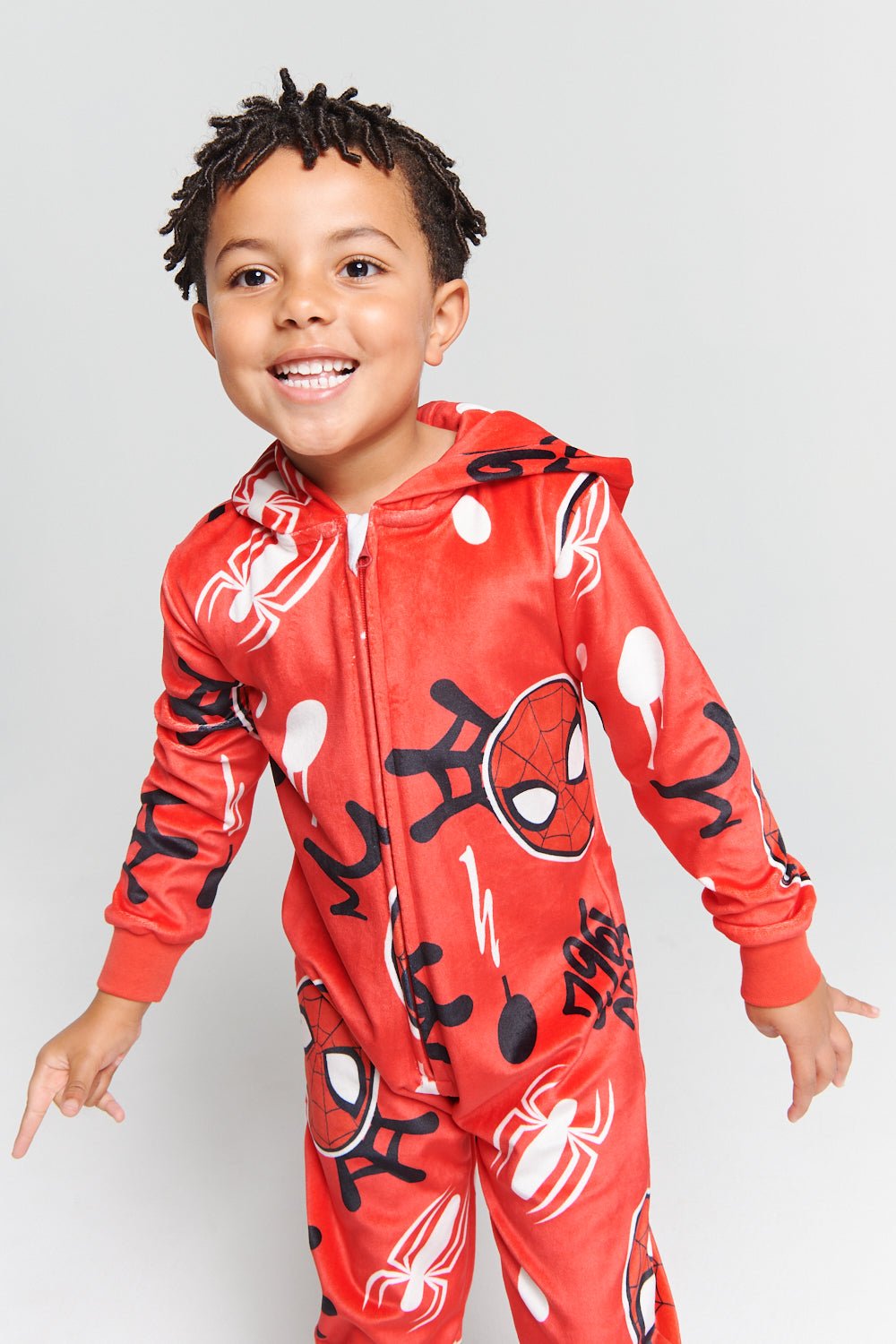 Get your little hero ready for bedtime battles in this Marvel Spiderman Boys Fleece Onesie. Designed in bold red with web-slinging graphics, this all-in-one fleece features iconic Spidey details, including character masks and comic book-style typography like "Since 1962" for an authentic Marvel touch.