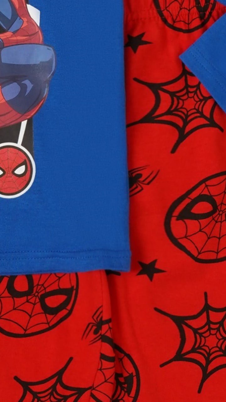 Marvel fans will just love these sustainably made Spider-Man™ pyjamas. Made with warm and soft cotton, providing a classic fit with added stretch for comfort. Print features Spiderman superhero web motif on a blue top, with contrasting red long leg all-over print pants and cuffed legs for added comfort. All of the cotton for our clothing is sustainably sourced and always will be - and we'll plant a tree for you free with your order with our partners Ecologi.